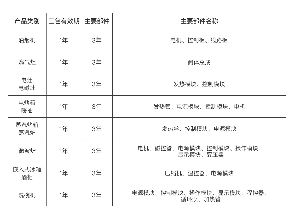 三包有效期最长延长1年,主要部件最长延长2年。