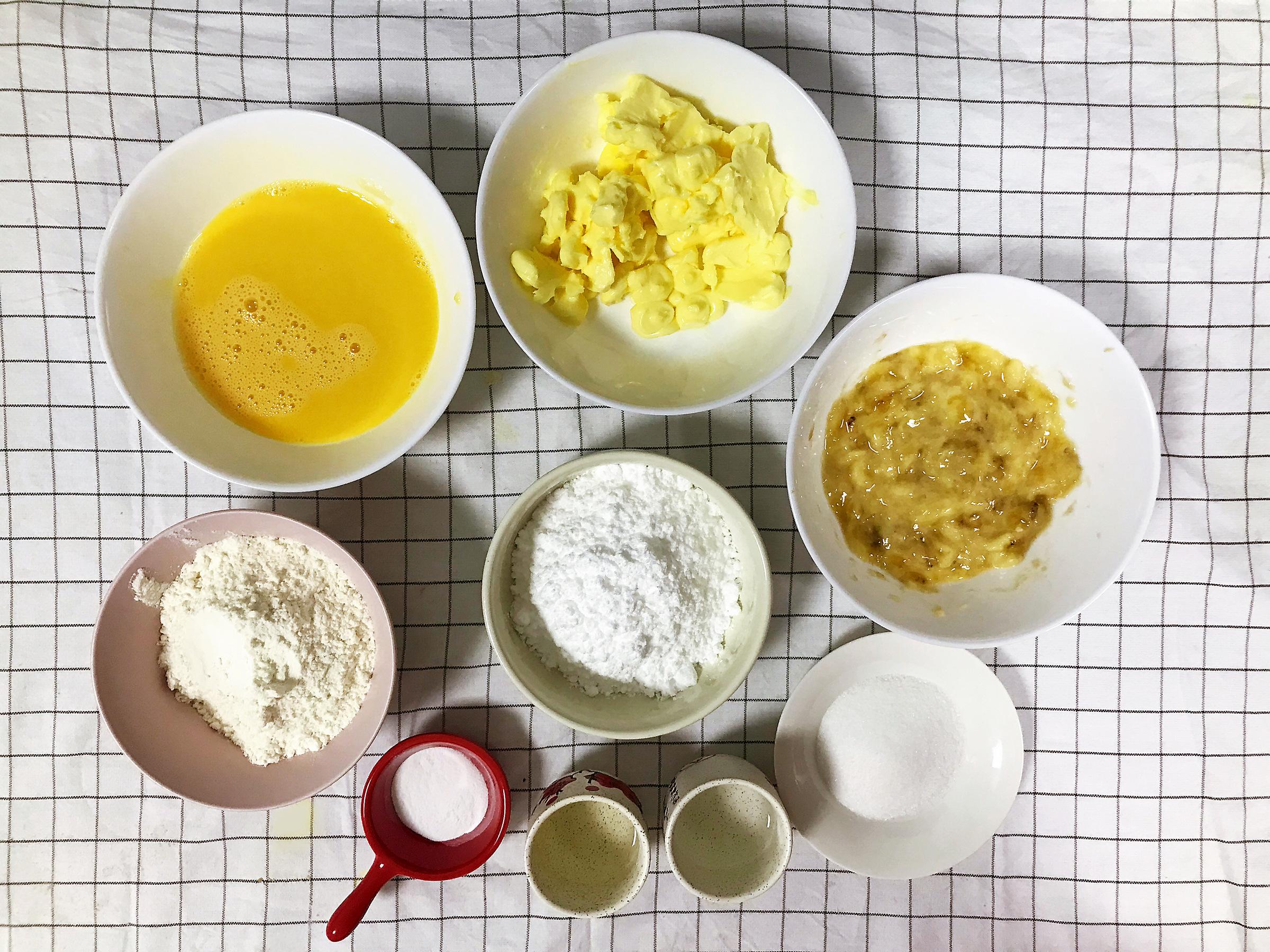见不到鸡蛋液方可再倒香蕉用叉子完全压成泥状,
